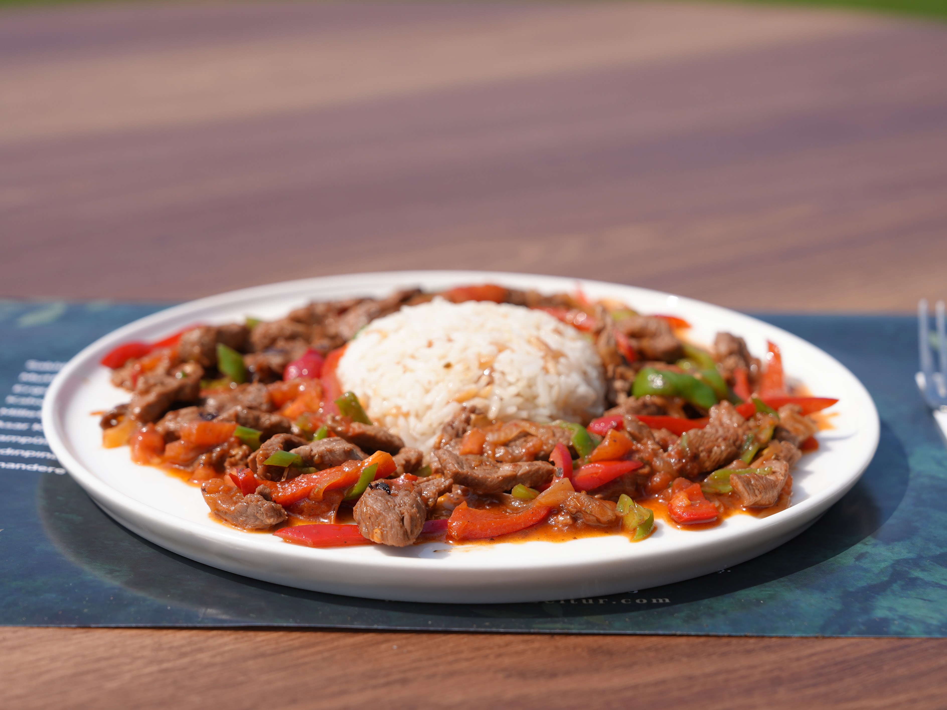 Jülyen doğranmış dana eti, biber, domates ve karamelize soğan ile hazırlanır.